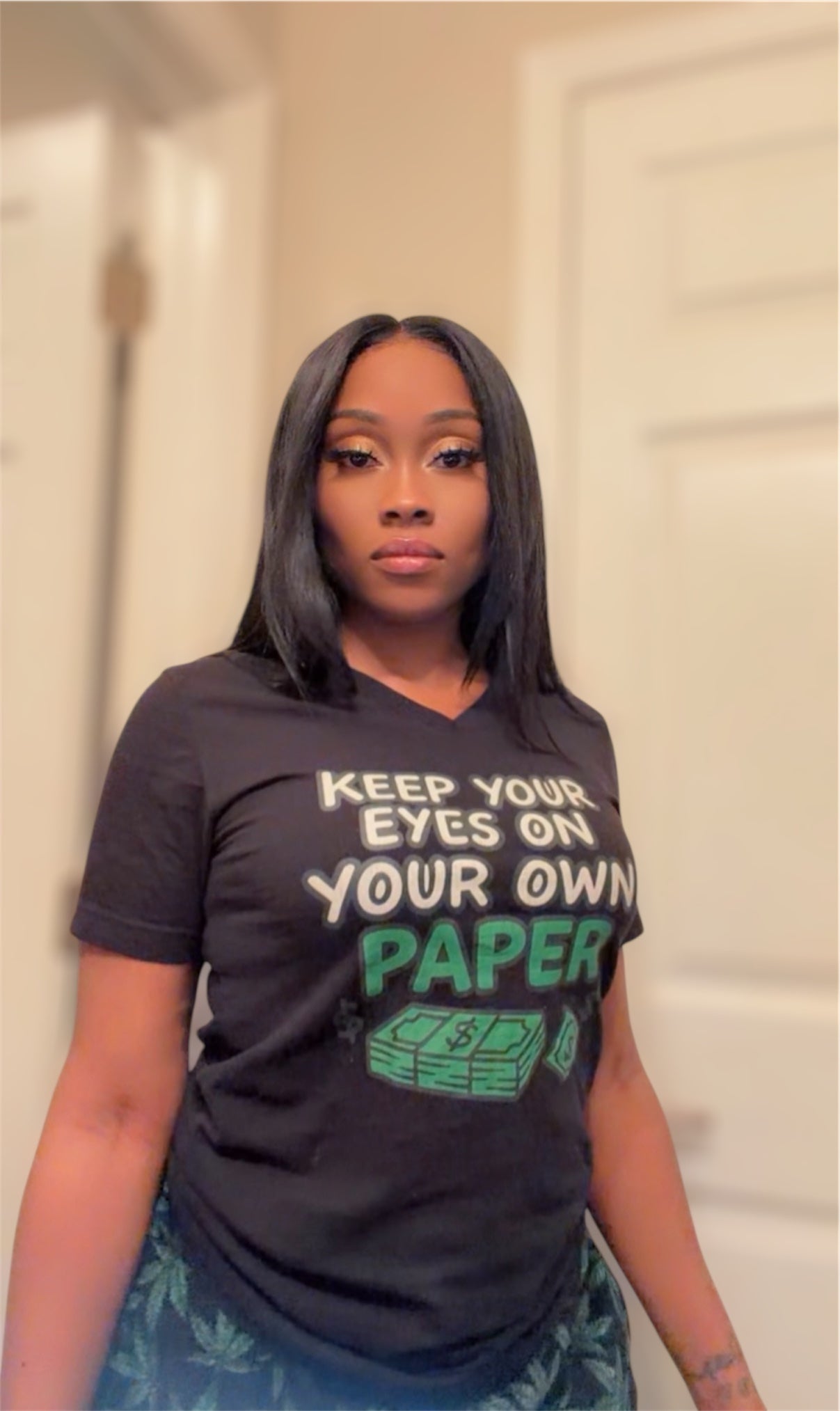 Stay focused, stay winning. This bold unisex tee features the motivational phrase “Keep Your Eyes on Your Own Paper” paired with a money stack graphic that pops in green. Perfect for entrepreneurs, hustlers, and anyone chasing their own goals, this shirt is all about blocking out distractions and securing your bag.